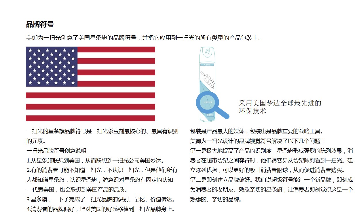 美御為一掃光殺蟲劑品牌重新制定了品牌策略,進行了品牌戰略管理,制定了多品牌的品牌戰略,重新進行了品牌定位,突出了品牌的品牌健康化特性,規劃了產品戰略結構,為品牌創建了高品質的品牌形象、產品包裝設計,這是美御從戰略高度為企業制定長遠的品牌戰略規劃,幫助品牌實現可持續發展。一、品牌戰略管理